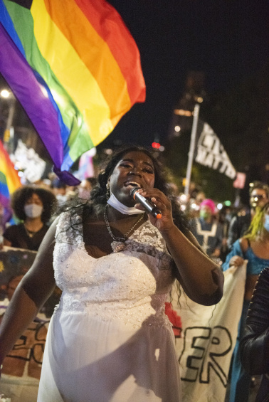 Image Description: Qween Jean leading The Stonewall Protests March in Manhattan, 2020.