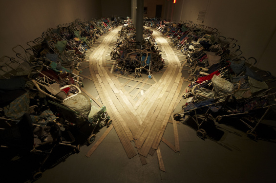 Nari Ward is known for transforming everyday objects, often gathered from the environment around his studio, to produce his site-specific installations. Ward’s selection of objects or materials—baby strollers, fire hoses, baseball bats, cooking trays, bottles, and shopping carts—is rooted in their connections to individual lives and shared stories. “I am excited about an object’s transformation,” says Ward. “What it means, its historical resonance in a contemporary art dialogue, its significance within the community . . . it is a type of alchemy.”