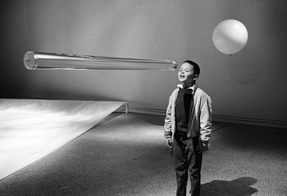 Child eyeing Hans Haacke’s Large Water Level, 1964–65. Installation view: “Miscellaneous Notions of Kinetic Sculpture,” Hayden Gallery, Massachusetts Institute of Technology, Cambridge, 1967. © Hans Haacke / Artists Rights Society (ARS), New York. Courtesy the artist and Paula Cooper Gallery, New York