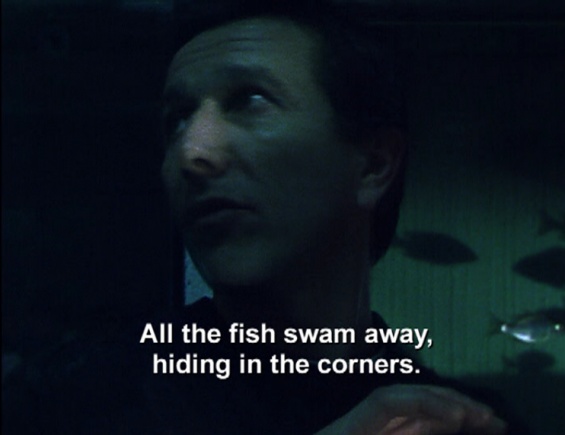 Nocturnes (1999) toggles between intimate portraits of two individuals as they cope with social isolation and anxiety: Jacques, who collects and cares for hundreds of fish, and Denis, an ex-mercenary who battles fictional enemies in PlayStation games. Sala adopts documentary strategies in his depictions of Jacques and Denis, but also edits his footage to weave their narratives together, blurring the distinction between the two men and between fact and fiction.