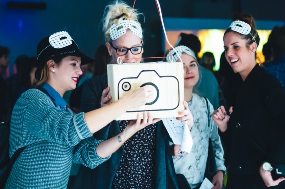 Visitors engage with Karl Scholz’s mobile hashtag dance-for-camera studio as part of the “AUNTSforcamera” installation at TrouwAmsterdam (November 6–30, 2014). Photo: Fotomeisjes