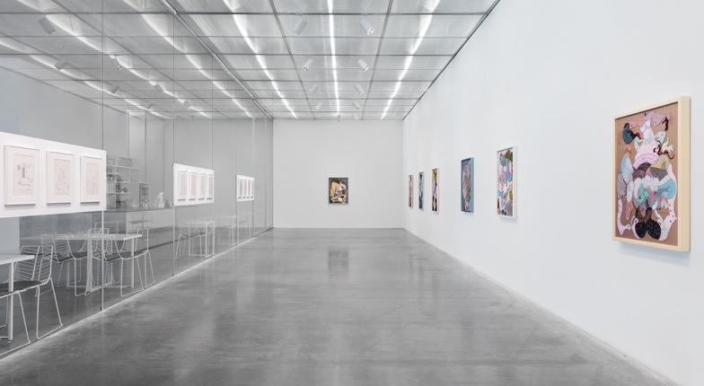 Beginning with the graphite drawings presented in the exhibition, Rossi turned inward to find a visual language independent of contemporary tendencies and art historical traditions. By the rules of a self-devised method, she started each work without any compositional plan and adopted an open and introspective process that allowed her “magic drawings” to emerge, unconsciously, through one form at a time. In these works, sporadic figurative suggestions countered Rossi’s drifting morphology and eventually transformed her wandering lines into mischievous, psychedelic portraits.