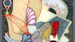 Rossi first exhibited her work in late-1960s Chicago where she became associated with the Chicago Imagists, a group of young artists known for their shared interest in non-Western and popular imagery, their pursuit of vivid and distorted figurative work, and their fondness for comic gags or puns. Rossi’s disorienting compositions, however, remain idiosyncratic even among an eclectic set of peers.