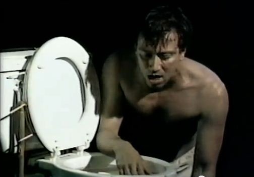 Blessed Are All the Little Fishes reveals Fleck’s attempts to grapple with the two biggest factors in his childhood: alcoholism and Catholicism. “It’s the story of this man’s binge, which is also society’s binge—man at his lowest point of alienation,” says Fleck, who, in the course of the show, dresses as a mermaid, urinates on stage, hacks up a dead goldfish, talks about bisexuality, and makes a toilet bowl into an altar by pasting a photo of Christ onto the lid. For his drunken character, Fleck says that the toilet is “the center of the universe, a place of miraculous visitation.”