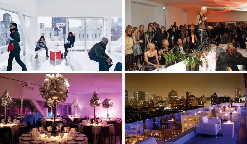 On the seventh floor of the building, the New Museum offers the public one of the most arresting public spaces in downtown Manhattan: an eleven-foot-high, nearly 2,000-square-foot multipurpose space for events and special programs. The Sky Room features two walls of floor-to-ceiling glass and is surrounded by panoramic vistas of the city from an outdoor terrace that runs without interruption around the east and south sides of the building.