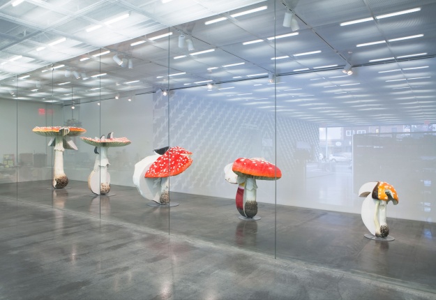 Over the years, the artist has employed psychotropic drugs, flashing lights, and other stimuli to potentially alter the viewer’s mental state. His new site-specific installation on the second floor, Double Light Corner, flickers back and forth on a central axis, creating an immersive, hallucinatory experience. The work is paired with a recreation of Höller’s Experience Corridor in which the viewer is given the choice to undertake a number of self-experiments. The sculptures, Giant Triple Mushrooms (2010), icons of the kind of personal exploratory journey that his work has always centered on, will also be on view. Taken as a whole, Höller’s work is an invitation to re-imagine the way in which we move through the world and the relationships we build as he asks us to reconsider what we think we know about ourselves.