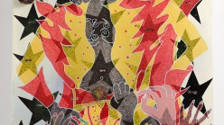 “Chris Ofili: Night and Day” is accompanied by a fully illustrated catalogue featuring contributions from the exhibition’s curator, Massimiliano Gioni, as well as art historian Robert Storr, lawyer and journalist Matthew Ryder, National Gallery of Art in London curator Minna Moore Ede, and fellow artists Glenn Ligon and Lynette Yiadom-Boakye.