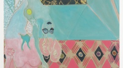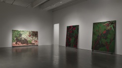 His most recent canvases have been animated by exotic characters, outlandish landscapes, and folkloric myths that resonate with references to the paintings of Henri Matisse and Paul Gauguin. This exhibition also includes a selection of paintings from Ofili’s “Metamorphoses” series. These brightly colored canvases were inspired by the poem of the same name by Ovid and illustrate the ancient Roman author’s stories of gods and humans, including the tale of the goddess Diana and the hunter Actaeon. These paintings were initially created at the invitation of the National Gallery, London, in response to their own series of paintings of Diana and Actaeon by Titian from the mid-sixteenth century. Ofili’s paintings offer a unique interpretation of both the original text and its painted interpretations, opening up the ancient myths to new, contemporary readings. These works are displayed in a dreamlike, painted environment inspired by British filmmakers Michael Powell and Emeric Pressburger’s 1947 film Black Narcissus.