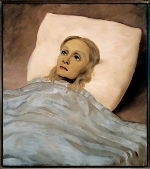 John Currin, Girl in Bed, 1993. Oil on canvas, 38 × 48 in (96.5 × 121.9 cm). © John Currin. Courtesy Gagosian Gallery. Photo: Robert McKeever