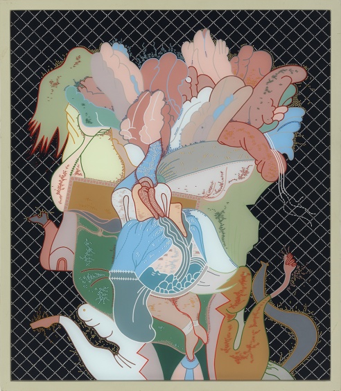 After viewing the exhibition, families are invited to produce portraits of each other that are inspired by the cartoonish characters seen in Rossi’s reverse Plexiglas paintings. To emulate the exaggerated forms within Rossi’s work, families will create their images using the method of blind contour drawing—an exercise in which an artist draws a subject without looking at the paper. Then, mimicking Rossi’s reverse painting technique, families will overlay their drawings with clear plastic, embellishing the surfaces of their works by adding color and sparkling texture.