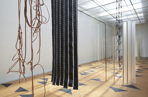 Image: Leonor Antunes, “I Stand Like A Mirror Before You,” 2015. Exhibition view: New Museum. Photo: Benoit Pailley