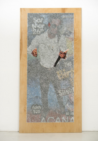 Wilmer Wilson IV, Afr, 2017. Staples and pigment print on wood, 96 × 48 × 1 1/2 in (243.8 × 122 × 3.8 cm). Courtesy the artist and CONNERSMITH, Washington DC