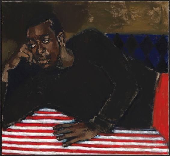 Lynette Yiadom-Boakye, Vigil For A Horseman, 2017 (part 1 of 3). Oil on linen, 47 5/8 × 51 3/8 in (121 × 130.5 cm). Courtesy the artist; Corvi-Mora, London; and Jack Shainman Gallery, New York