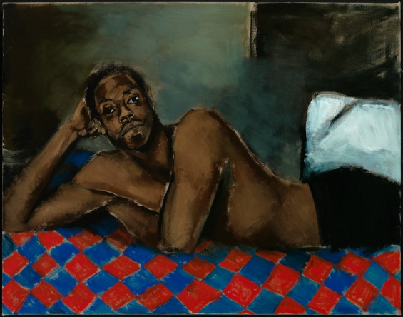 Lynette Yiadom-Boakye, Tie The Temptress To The Trojan, 2016. Oil on linen, 47 1/4 × 63 1/4 in. © Lynette Yiadom-Boakye. Courtesy the artist; Jack Shainman Gallery, New York; and Corvi-Mora, London
