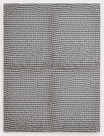 Cheryl Donegan, Untitled (grey folds), 2014. Printed cloth, 36 × 50 in (91.4 × 127 cm). Courtesy the artist
