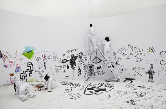 Please join us for a special evening for educators in conjunction with Paweł Althamer’s work Draftsmen’s Congress. Educators will have the chance to participate in Althamer’s collaborative piece and tour his exhibition “The Neighbors.” Over the course of the show, the blank white space of the New Museum’s Fourth Floor gallery will be transformed through the gradual accumulation of drawings and paintings by Museum visitors and a wide array of invited community organizations. Draftsmen’s Congress essentially functions as a message board in which different New York–based groups, associations, and collectives are invited to paint, draw, and write on the gallery walls and floor.