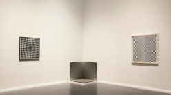 Many of the artists in the show take a scientific approach to investigating the realm of the invisible, dismantling the mechanics of vision in order to conceive new possibilities for seeing. Central to the exhibition is a re-examination of Op art and perceptual abstraction, with a particular focus on the work of painters Bridget Riley, Victor Vasarely, Richard Anuskiewicz, and Julian Stanczak, amongst others. Op art was unique in the way it internalized technology and captured both the ecstatic and threatening qualities it posed to the human body. Furthermore, the exhibition will include a number of kinetic and “programmed” artworks as well as expanded cinema pieces, which amplify the radical effects of technology on vision. A section of the exhibition will present a selection of experimental films and videos realized with early computer technology. One highlight of the installation will be a reconstruction of Stan VanDerBeek’s Movie-Drome (1963–66), an immersive cinematic environment where the viewer is bathed in a constant stream of moving images, anticipating the fusion of information and the body, typical of the digital era.