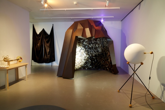 Centering on a paradoxical landscape—a mountain that is also a cave—the exhibition and its constantly shifting elements (including musical instruments, staging tools, and performance artifacts) produce a reactive space that focuses on the politics of vocalizing perspectives and the necessity of participation in lived experience. All the while, the affective role of voice in Oleson’s work mobilizes a mix of humor, rancor, and joy in addressing an avalanche of pressing issues in contemporary life.