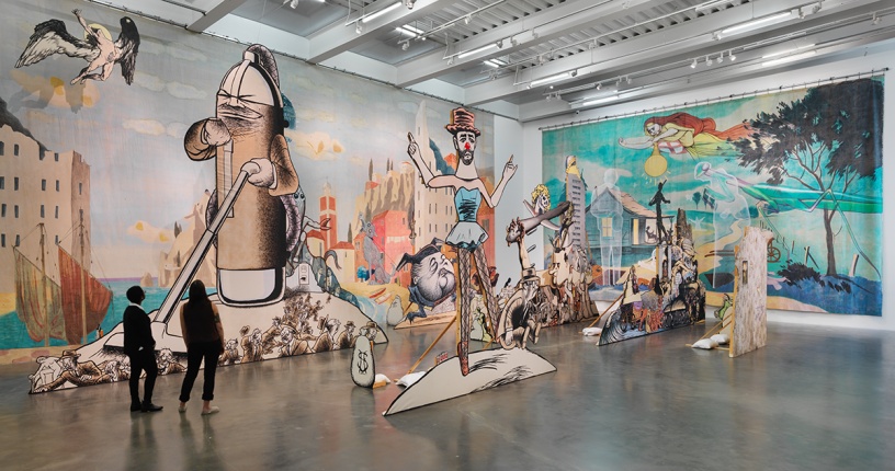 Jim Shaw, Labyrinth: I Dreamt I was Taller than Jonathan Borofsky, 2009. Installation; acrylic on muslin canvas stretched over plywood panels, dimensions variable. Collection Eric Decelle, Brussels. Image courtesy the artist and Galerie Praz-Delavallade, Paris. Photo © F. Deval, CAPC Musée d’art contemporain de Bordeaux
