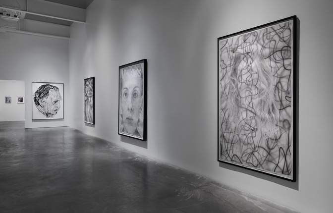 “The End is Here” presents some of Shaw’s most iconic projects, including early airbrush drawings; large selections from his series “Dream Drawings” (1992–99), “Dream Objects” (1994–present), and the sprawling “My Mirage” (1985–91); and Labyrinth: I Dreamt I was Taller than Jonathan Borofsky (2009), a large-scale, immersive installation of sculptures and painted theatrical backdrops. These instantly recognizable works and series—which succeed in reinvigorating and complicating traditional categories like portraiture, history painting, figurations, and abstraction—have never before been brought together in a single exhibition. This survey also includes a presentation of his collection of thrift store paintings, originally shown in New York in 1991, as well as his ongoing collection of religious and pedagogical materials. Presented under the title “The Hidden World,” this diverse assortment of pamphlets, posters, banners, and other ephemera catalogs the spiritual exhortations and admonishments of a constantly expanding pantheon of homegrown prophets and visionaries. These two collections demonstrate Shaw’s unique insight into the spiritual and aesthetic histories of America and the ways in which the obscure, personal expressions he has collected have informed his own unique artworks. As part of his process, Shaw consistently relies upon in-depth historical research, the exploration of his own personal experience and subconscious, and the creation of fictitious histories and characters. The combination of these strategies results in a powerful evocation of the themes of belief, madness, materialism, and war, as they continue to influence contemporary life.