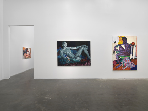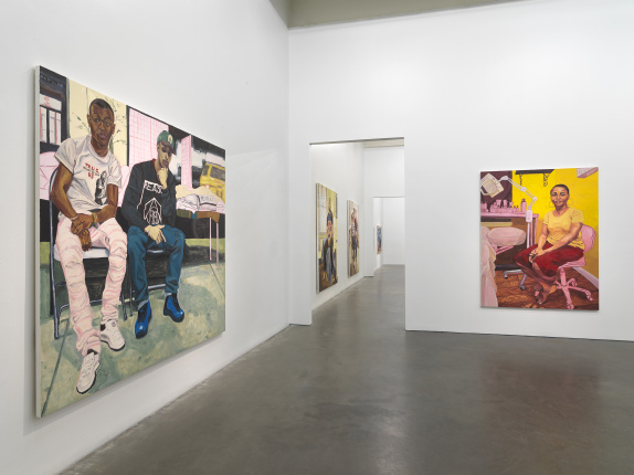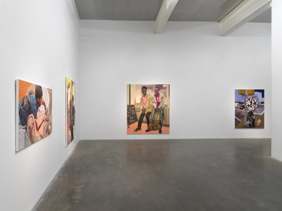 Portraying people from communities in which the artist lives and works—including former classmates at Yale, where she earned an MFA; street vendors and neighbors near her home in Harlem; and her own students at Rutgers University-Newark in New Jersey—Casteel insists upon the ordinary, offering scenes with both the informality of a snapshot and the frontality of an official portrait. In these richly colorful works, Casteel draws upon ongoing conversations on portraiture that encompass race, gender, and subjectivity, connecting her practice to the legacy of artists like Alice Neel, Faith Ringgold, and Bob Thompson, among others. Casteel’s studies in anthropology and sociology also inform her works, which can often be read as a reflection on the presentation of the self in everyday life and as an investigation of the relationships that tie together intimacy and distance, familiarity and otherness.