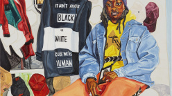 In her large-scale oil paintings, Casteel has developed a distinctive figurative language permeated by the presence of her subjects, who are typically captured in larger-than-life depictions that teem with domestic details and psychological insights.