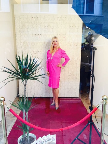 Justin Vivian Bond, My Model | My Self: I’ll Stand By You, 2015. Unique red carpet, barriers, red rope, photographer’s lamp, potted plant, books, two rolls of My Model | My Self wallpaper made in collaboration with George Venson of Voutsa, pink dress by Frank Masandrea (1947–1988), and performance, 93 × 95 3/4 × 78 3/4 in (236 × 243 × 200 cm). Courtesy the artist and VITRINE, London