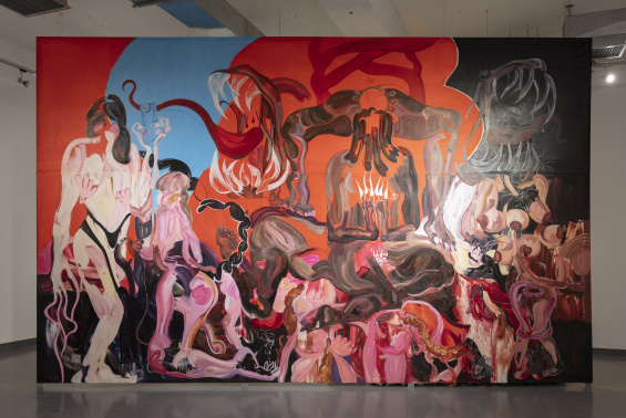 Come together with fellow visitors for a Live Virtual Tour of this summer’s Lobby Gallery exhibition, “Wynnie Mynerva: The Original Riot.” Take a closer look at Mynerva’s gallery-spanning painting—the largest ever exhibited at the New Museum—and a sculptural element that reimagines the Biblical origin story of Eve to envision and inspire gender expansive futures. We will consider themes of catharsis, revenge, pleasure, and freedom.
