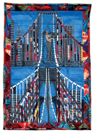 Faith Ringgold, Sonny’s Bridge, 1986 (detail). Acrylic on canvas with printed and pieced fabric, 84 ½ x 60 in. (214.6 × 152.4 cm). High Museum of Art; Gift of Mr. and Mrs. Ronald D. Balser. © Faith Ringgold / ARS, NY and DACS, London, courtesy ACA Galleries, New York 2021