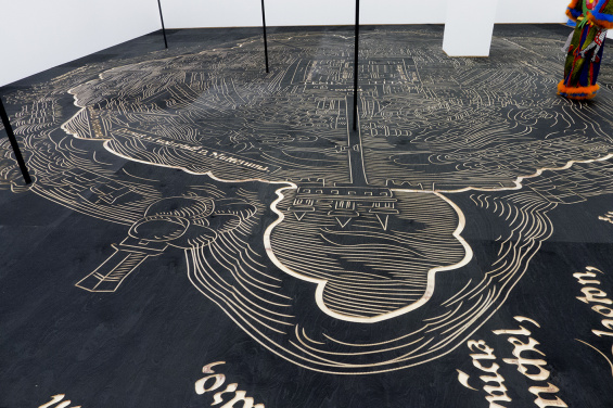 Mariana Castillo Deball, Nuremberg Map of Tenochtitlan, 2013. Installation view: “Preis der Nationalgalerie für Junge Kunst,” Hamburger Bahnhof – Museum für Gegenwart, Berlin, 2013. Courtesy the artist and Staatliche Museen zu Berlin, Nationalgalerie. Photo: David von Becker