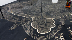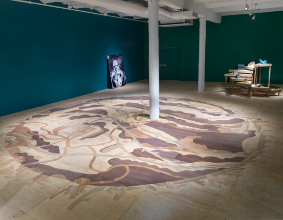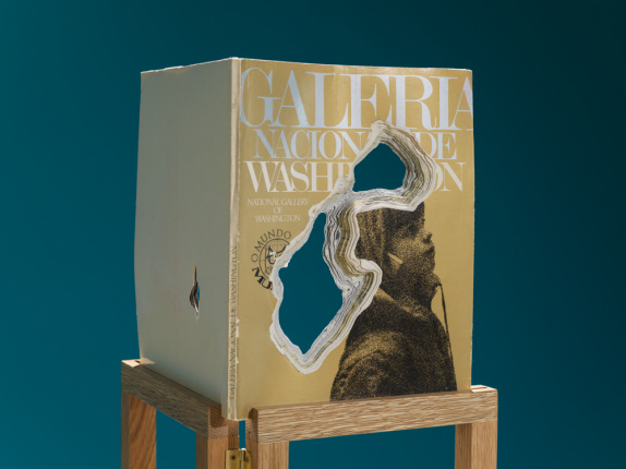 The title of Castillo Deball’s New Museum exhibition, “Finding Oneself Outside,” offers a possible description of a sensation that is central to both the study of history and the experience of encountering an unfamiliar culture. The exhibition’s centerpiece, a specially commissioned inlaid wood floor installation, draws from an early colonial map of San Pedro Teozacoalco, Mexico, which bears a unique stylistic blend of European maps and Mixtec codices of the sixteenth century. A large-scale sculpture, No solid form can contain you (2010), offers a peculiar visualization of space as a would-be mold turned inside out—panels cast from a statue of Coatlicue, the Mexica, or Aztec, mother goddess, are inverted to reveal their concave sides and reassembled to create a hollow figure. Do ut des (2014–19), Castillo Deball’s series of perforated books, borrows its title from a Latin phrase meaning “I give so that you will give,” and her Mathematical Distortions (2012) refers to the shifts in knowledge that occur with shifts in position. Together, the works in the exhibition speak to the place of the viewer, the permeability of surfaces, and ideas of reciprocity and exchange.