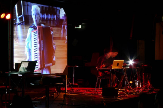 Pauline Oliveros and Doug Van Nort perform with FILTER, an artificially intuitive software agent that listens and responds to the performing musicians transforming the duo to a trio.