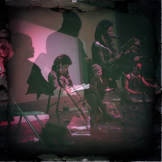 Members of Metropolarity reading as part of Curatorial Fellow Anthony Romero’s “Erasures” at Vox Populi AUX, Philadelphia in January 2015