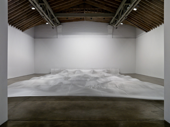 Hans Haacke, Wide White Flow, 1967/2008. Electric fans and white silk, dimensions variable. Installation view: Paula Cooper Gallery, New York, 2008. © Hans Haacke / Artists Rights Society (ARS), New York. Courtesy the artist and Paula Cooper Gallery, New York. Photo: Ellen Wilson
