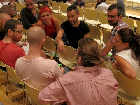 “30 Years In, 30 Years Out: AIDS Activism Today: Queerocracy and Visual AIDS,” workshop, New Museum, July 2012. Photo: Juana Berrío