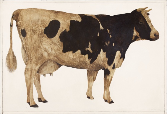 Llyn Foulkes, Cow, 1963. Oil on canvas, 43 × 62 in (109.2 × 157.5 cm). Private collection. Photo: Jason Dewey