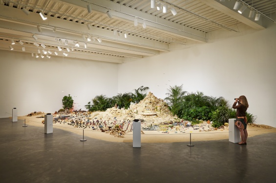 Chris Burden, A Tale of Two Cities, 1981. Two miniature cities with approx. five thousand toys, sand, plants, boulders. 800–1,200 sq ft (243.8–365.8 sq m). Weight: Approx. 53,000 lbs. Orange County Museum of Art, Newport Beach. Installation view: “Chris Burden: Extreme Measures,” New Museum. Photo: Benoit Pailley