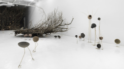 Petrit Halilaj (b. 1986, Kostërrc, Skenderaj-Kosovo) often uses his own biography as a point of departure, adopting exhibition processes to alter the course of private and collective histories. Encompassing sculpture, drawing, text, and video, many of Halilaj’s works incorporate materials from his native Kosovo and manifest as ambitious spatial installations through which the artist translates personal relationships into sculptural forms.
