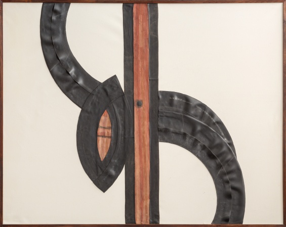 Carol Rama, Spazio anche più che tempo [Even More Space Than Time], 1970. Rubber tire collage on canvas, 47 1/4 × 59 in (120 × 150 cm). © Archivio Carol Rama, Turin. Photo: Pino dell’Aquila