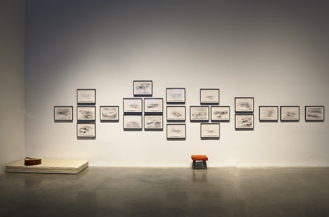 At the New Museum, Kjartansson presents works with and about his family, including a newly orchestrated performance and video piece entitled Take Me Here by the Dishwasher: Memorial for a Marriage (2011/2014), in which ten musicians play a live composition for the duration of the exhibition. This work takes inspiration from a scene in Iceland’s first feature film, Morðsaga (1977), directed by Reynir Oddsson, in which the main character of the film, played by Kjartansson’s mother, Guðrún Ásmundsdóttir, fantasizes about a plumber, played by Kjartansson’s father, Kjartan Ragnarsson, in a sex scene on the kitchen floor. As family legend has it, Kjartansson was conceived the night after the film shoot. Kjartan Sveinsson, composer and a former member of the Icelandic band Sigur Rós, transformed the scene’s dialogue into a ten-part polyphony played by ten musicians, who sing and play guitar in the tradition of the troubadour to accompany a projection of the original film scene. Other works in the exhibition are made in collaboration with Kjartansson’s parents, including a new series of drawings of the sea made with his father, entitled The Raging Pornographic Sea (2014), and an ongoing video collaboration with his mother where she repeatedly spits in his face, Me and My Mother, which began in 2000. This exhibition provides an opportunity to look at the way Kjartansson’s work explores family ties and delusions of grandeur, as well as to engage with his ongoing interest in the conflation of reality and fantasy.