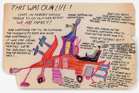 Raymond Pettibon, No Title (They are innocent…), ca. 1960s/2000s. Crayon and pencil on paper, 8 1/2 × 11 in (21.6 × 27.9 cm). Courtesy David Zwirner, New York