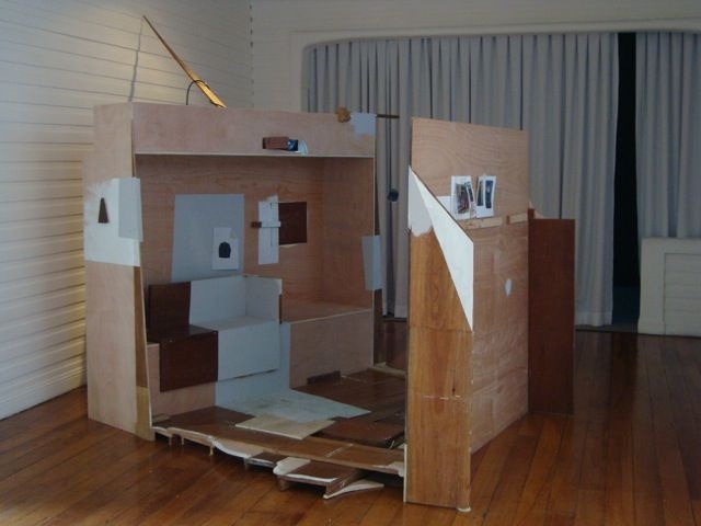 Ramón Zafrani’s series of architectonic works that model recent high-rise buildings are constructed out of lumber from old North American houses in the Panama Canal Zone. These historic buildings, specifically designed for tropical conditions yet made from redwood pine imported from the US, are currently being demolished. Meanwhile, high-rise buildings, indicating globalized architectural developments, are being built in Panama City.