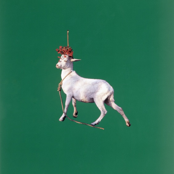 Sarah Charlesworth, Goat, from the “Objects of Desire” series, 1985. Cibachrome with lacquered wood frame, 42 × 32 in (106.6 × 81.2 cm). Courtesy the Estate of Sarah Charlesworth and Maccarone Gallery, New York