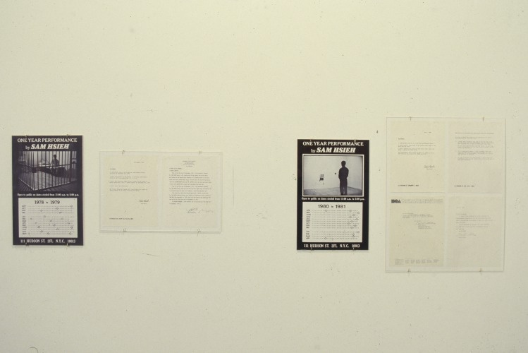 Tehching Hsieh, Posters from One Year Performance, 1980–81. Installation view: “Choices: Making an Art of Everyday Life,” 1986, New Museum. Photo: New Museum