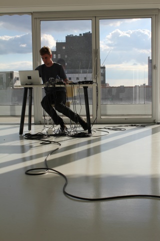 Jennifer Monson, Sky Room Concert with Jeff Kolar and Jennifer Monson, 2013. Rehearsal image. Performance: New Museum, New York. Photo: Jessica Wallen, Fall 2013 R&D Season Fellow