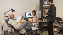 Education, however, often engages performance as a tool for research as part of a larger residency or by inviting visitors into the process of performance-making through open studios and other programs. Education also uses the theater to present performance in a more traditional event-based format—with light cues, sound cues, and other conventions of contemporary theater and dance. Curatorial tends to work with visual artists who incorporate performance as part of their practice, while Education actively involves all kinds of contemporary performance-makers: dancers, actors, playwrights, directors, composers, singers, storytellers, comedians, performance artists, and so on.