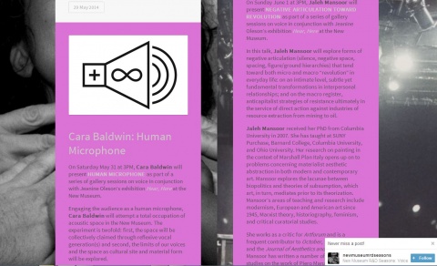 Tumblr blog for New Museum R&D Season: VOICE, 2014 (screencap)