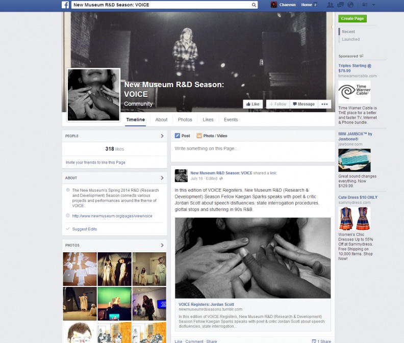 Facebook page for New Museum R&D Season: VOICE, 2014 (screencap)