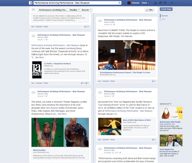 Facebook page for “Performance Archiving Performance” at New Museum, 2014 (screencap)