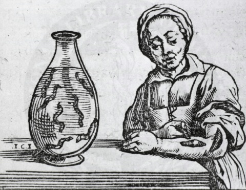 Woodcut illustration of a woman using leeches in bloodletting, from Guilelmus van den Bossche and Christoph Jegher, Historia medica, in qua libris IV. animalium natura, et eorum medica utilitas esacte & luculenter (Brussels: Typis Ioannis Mommarti, 1639)